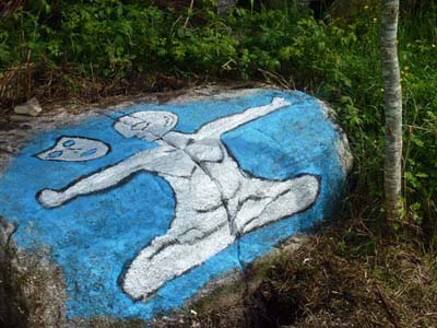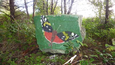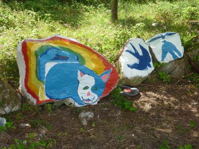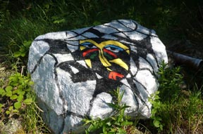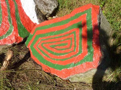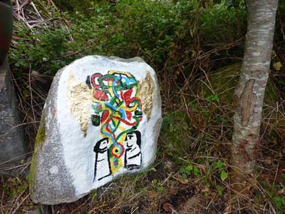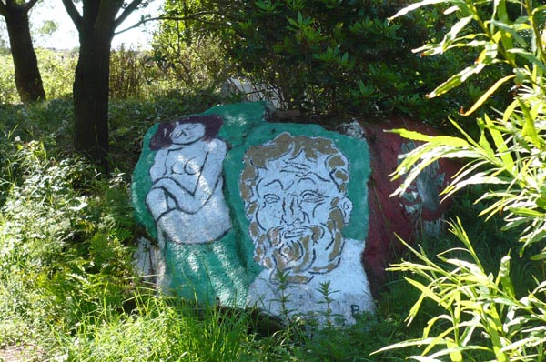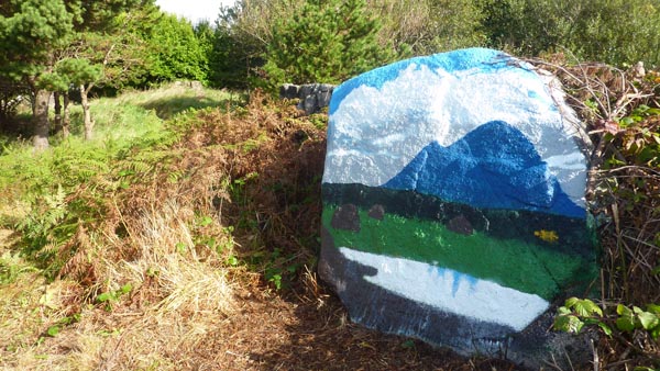 The NADA rocks (by Bob Quinn) are to be seen at Tuairín, Béal an Daingin, Conamara.